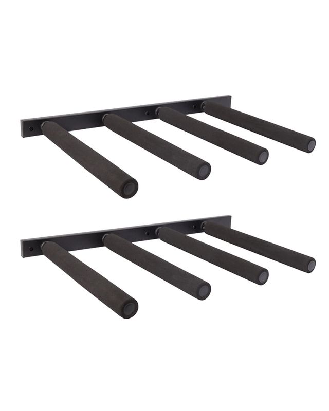 Angled Arms arms are set on an upward 10 degree for extra secure storage of your boards. the slight angle also makes loading boards easier, and requires less space out from the wall.Removable Arms this rack is designed for tight home storage spaces, and is equipped with removable arms. If you're not using the rack, you can pop the arms off with a simple push pin in seconds, saving you precious storage space.