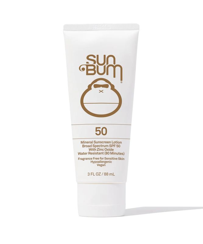 Sun Bum zinc-based, Fragrance Free mineral sunscreen lotion, with Broad Spectrum SPF 50 protection.s