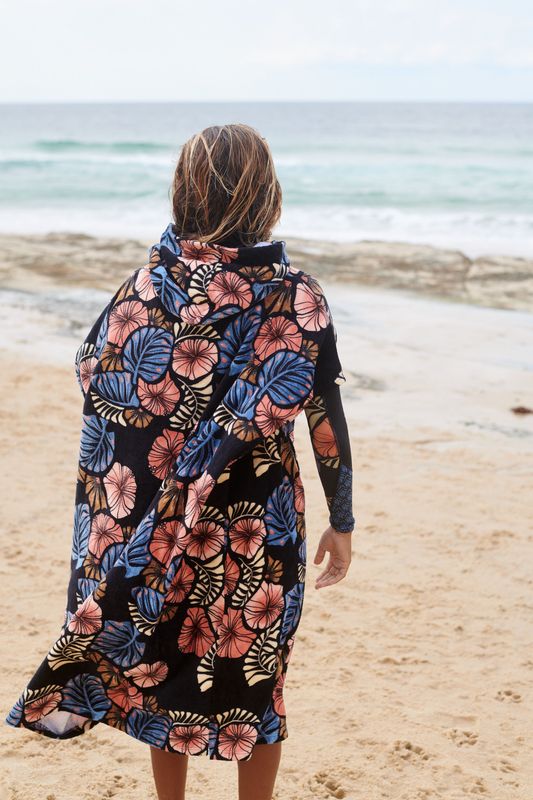 The Ladies Daydream hooded poncho is perfect for drying off and changing out of your wetsuit or swimwear. With oversize sleeve openings, a zip patch pocket and in 340GSM comfy cotton velour this is an easy poncho that you can slip in and out of after a day at the beach.