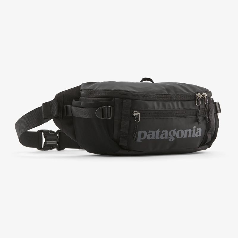Patagonia's Ultralight Black Hole Mini Hip Pack is made from extremely lightweight yet tough fabric, this handy hip pack stuffs into its own pocket when not in use and expands to carry small essentials for everyday use. The main compartment features a key clip and a security pocket that doubles as the pack’s stuffsack. The soft, flexible webbing belt lets you carry the Mini around your hips or off the shoulder, bandolier style. Made from 2.4-oz 70-denier 100% recycled nylon (50% postconsumer recycled/22% solution-dyed) ripstop treated with a silicone face coating and a polyurethane back coating and lined with 3.3-oz 200-denier 100% recycled polyester with a polyurethane coating and a DWR (durable water repellent) finish.