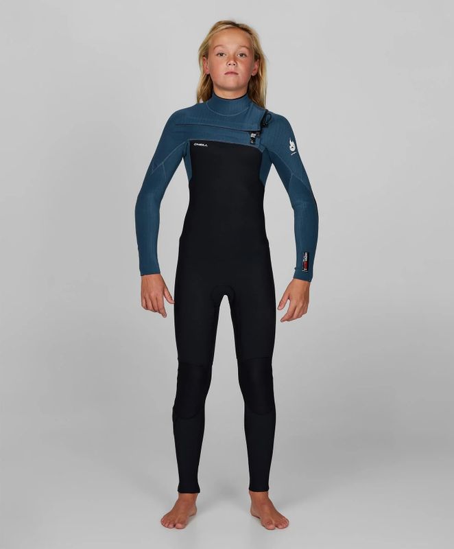 O'Neill Boy's Hyperfreak Fire Chest Zip 3/2 mm - Gunmetal / BlackNew for 2022, the O'Neill Hyperfreak Fire takes their most successful suit to new levels of performance, warmth and sustainability.Hyperfreak steamers are the best in the business when it comes to comfort, stretch and performance. They are super light weight, easy to get on and off thanks to their stretch and by far the most comfortable suit you can surf in.Combining new TB4 neoprene and TB4 Air Firewall, and lined with TB4X graphene infused liner to further increase the warmth of the ridiculously lightweight and stretchy Hyperfreak series steamers.Utilising recycled oyster shells, car tyres and plastics, solvent free lamination, dope dyed yarn, and limestone neoprene, the 2022 Hyperfreak steamers have taken a giant step towards building a more sustainable future and protecing our oceans.