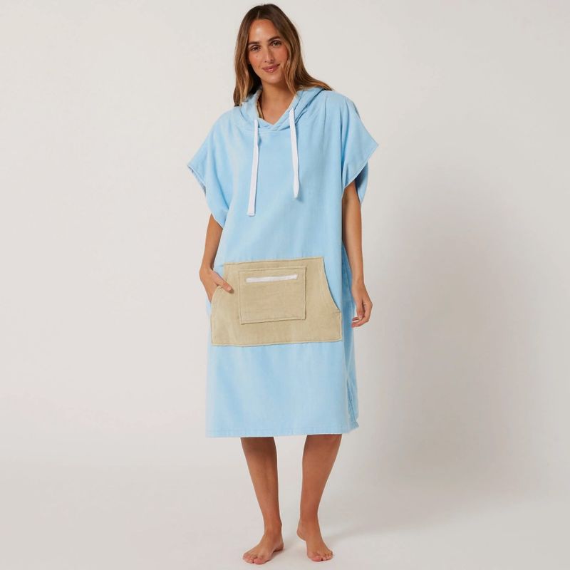 The Ladies Daydream hooded poncho is perfect for drying off and changing out of your wetsuit or swimwear. With oversize sleeve openings, a zip patch pocket and in 340GSM comfy cotton velour this is an easy poncho that you can slip in and out of after a day at the beach.