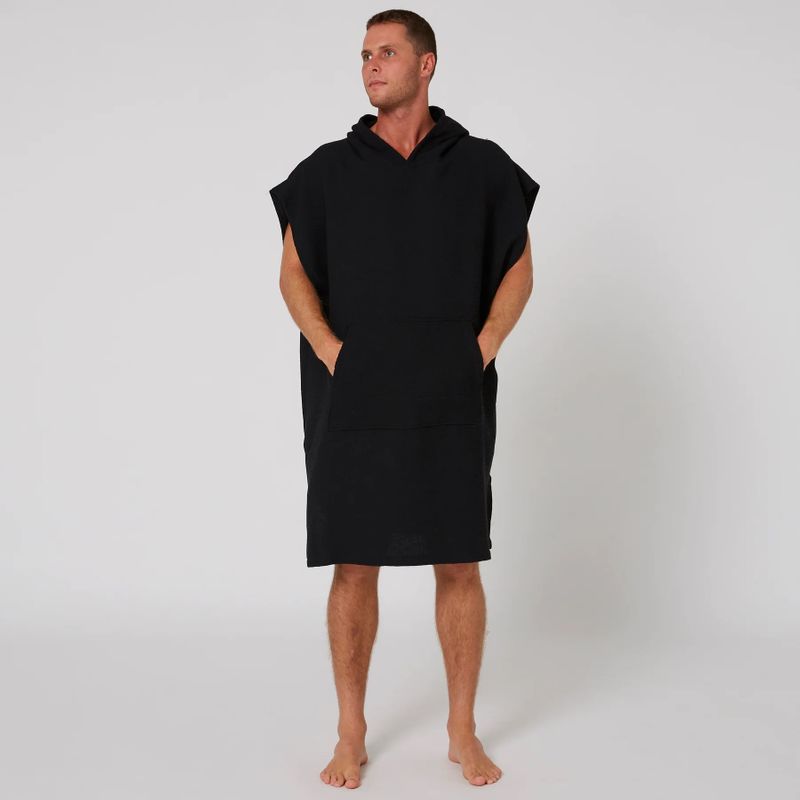 The Mens Waffle Hooded Poncho Towel is perfect for drying off and changing out of your wetsuit or swimwear. With oversized sleeve openings, a kanga pouch pocket and 250GSM cotton waffle, this is an easy poncho that you can slip in and out of after a day at the beach.